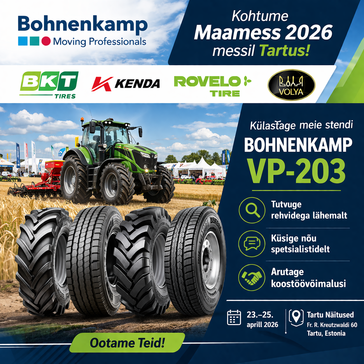 23.–25. aprillil 2026 osaleb ettevõte Bohnenkamp Baltikumi suurimal rahvusvahelisel põllumajandusmessil Maamess 2026, mis toimub Tartus (Eesti) aadressil: Fr. R. Kreutzwaldi 60.